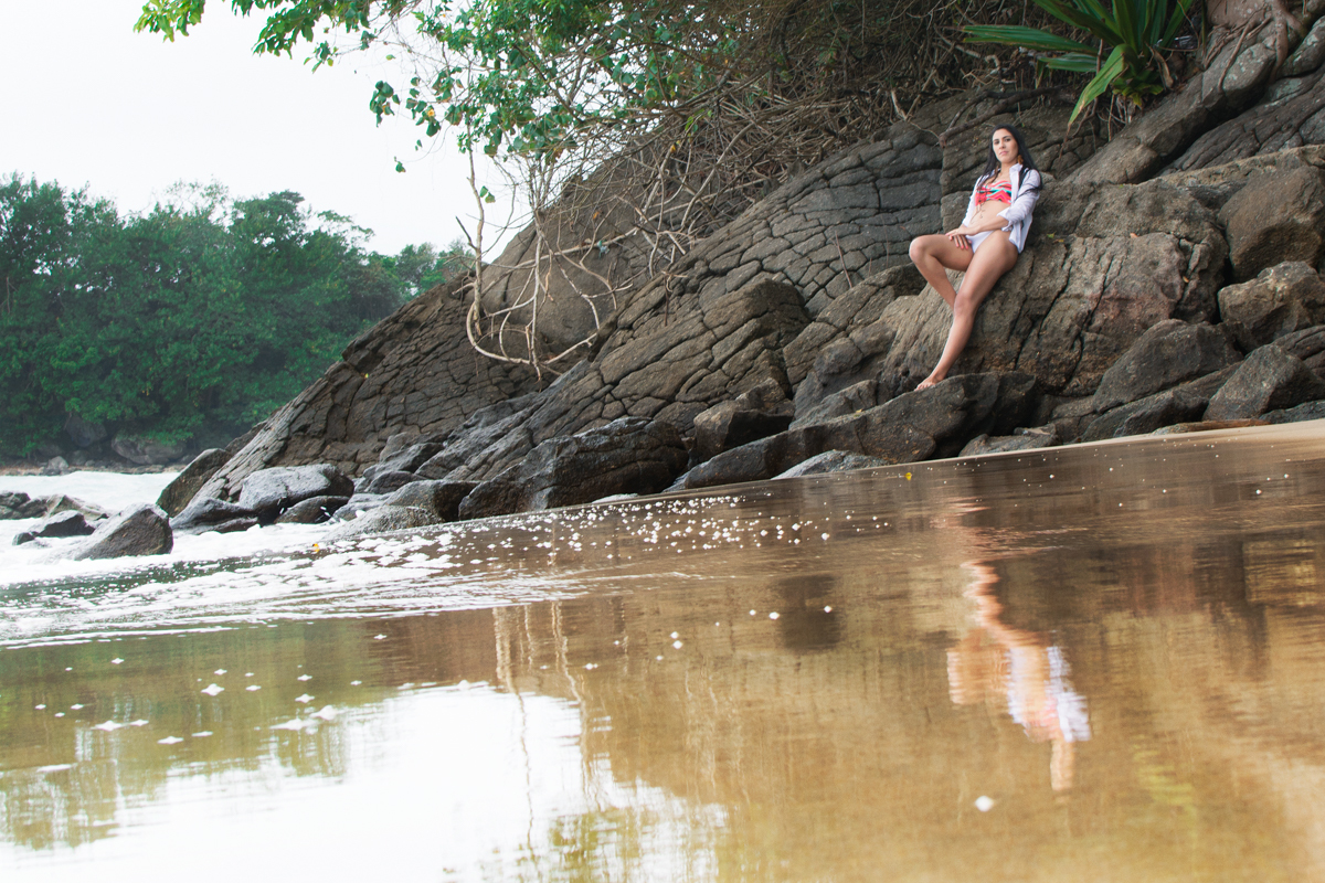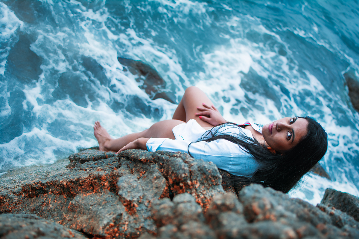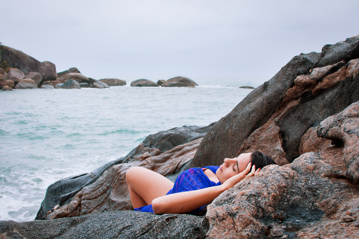 E la está ela, ao som do mar, sem cantarolar, a olhar, a pensar...