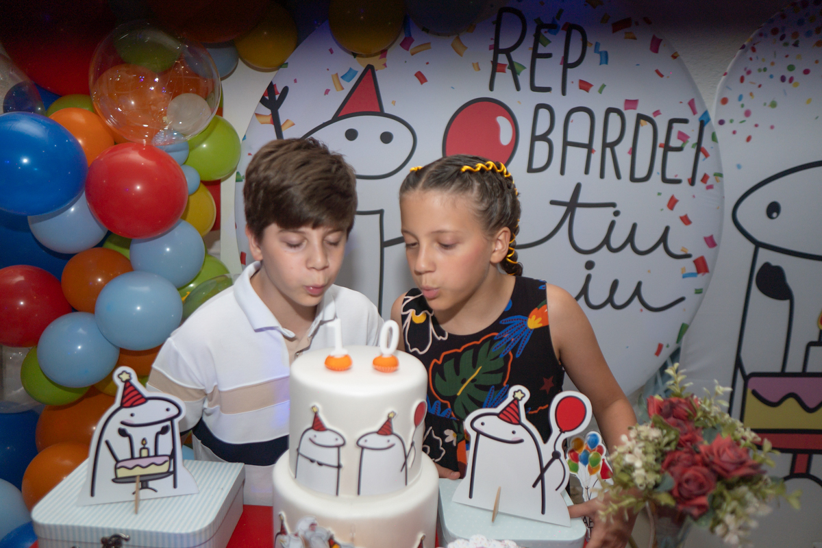 Vejam o incrível espetáculo que foi a festinha do Matteo e da Sophie,